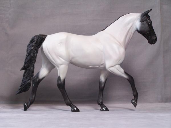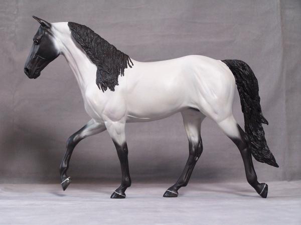 Artist's choice color black roan with a small "v" star by Declan. Subtle purple