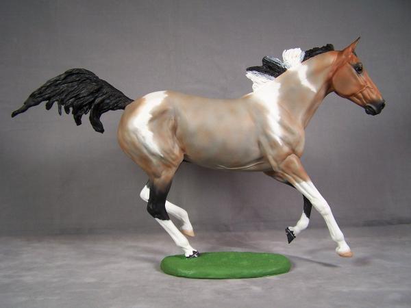 Our "Northwind" resin in an eyecatching bay roan tobiano! Could be shown as