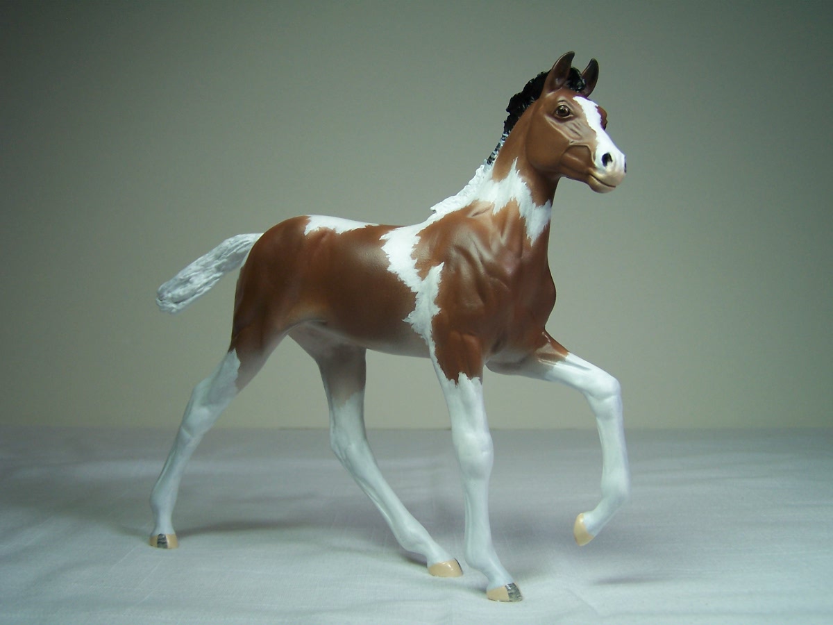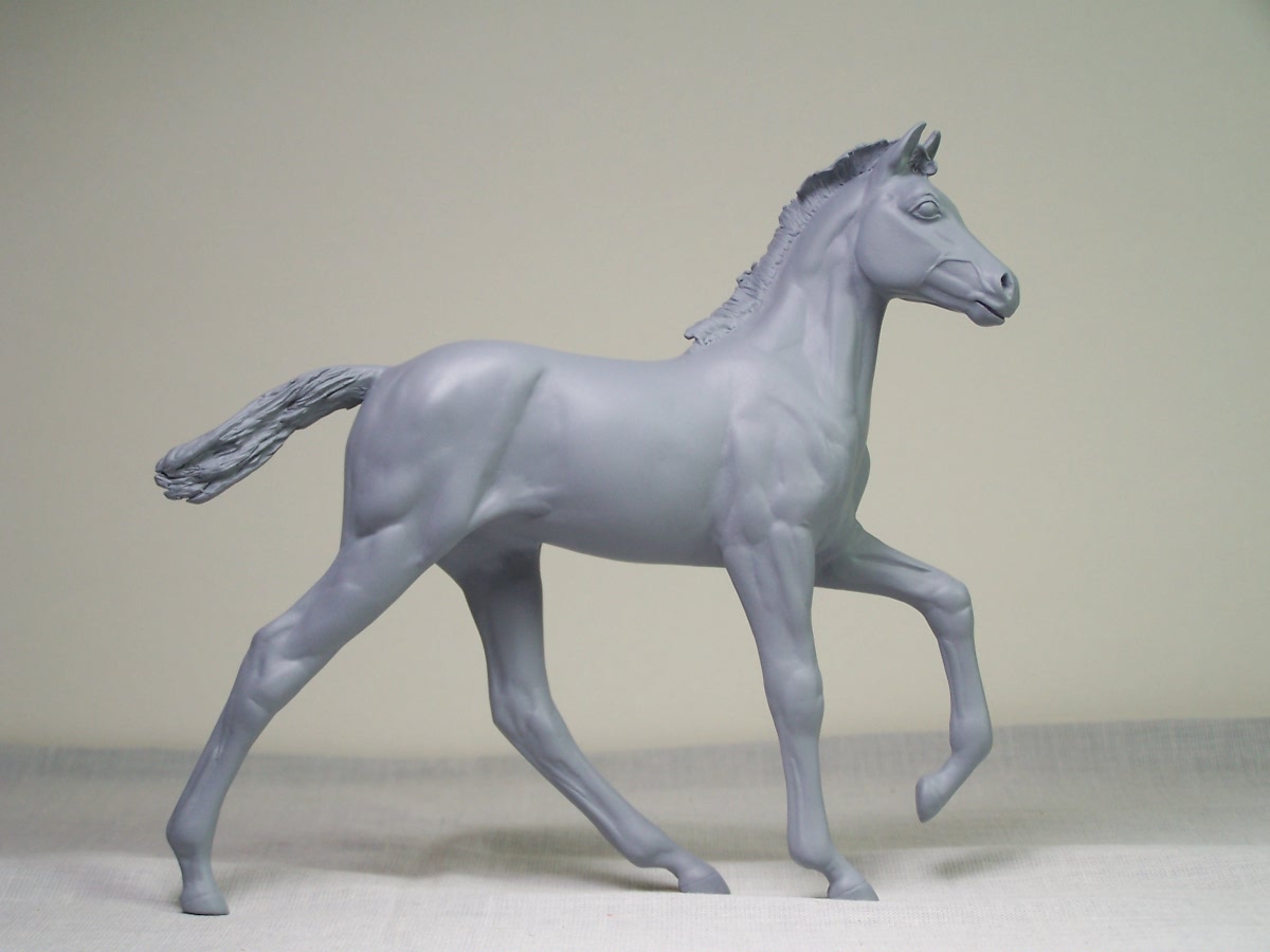 | A foal just for you! Happy little "Natalee" is gaiting along and could represent a number of different gaited or non gaited foals. She looks at the world with a glint in her eye and a mischevious curiosity. She is gorgeous next to her proud mommy "Miriam" but just as precious on her own. Like "Miriam" she is 1/10 scale (6" tall at eartips) and a limited edition of 50. "Natalee" is in stock! Hollow cast in high grade resin by Mountain View Studios, "Natalee" is a limited edition of 50. Unpainted $90.00 special price plus shipping. Painteds as available (or custom order) start at $165.00 special price. If you would like a set of "Miriam" and "Natalee" please note we only have a limited number of "Miriam" available from the edition and these will be sold on a first come first serve basis. |