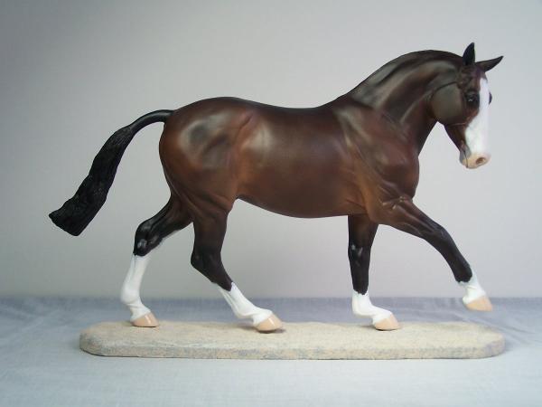 Moore Hall in artist's choice dark, velvety, super rich bay. Beautiful bald face