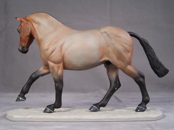 Matte finish with glossy eyes and hooves. Base is a clay color