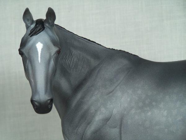 Subtle dapples, dark mane and tail going grey, star and